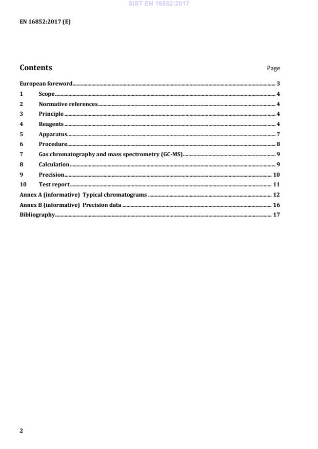 SIST EN 16852:2017 is a standard published by the Slovenian Institute for Standardization (SIST). Its full title is "Foodstuffs - Determination of ethyl carbamate in stone fruit spirits, fruit marc spirits and other spirit drinks - GC-MS method". This standard covers: This European Standard specifies a gas chromatographic method using mass spectrometric detection for the determination of ethyl carbamate (EC) in stone fruit spirits, fruit marc spirits and other spirit drinks. The method has been validated in an interlaboratory study for stone fruit spirits and fruit liqueurs, at levels ranging from 0,253 mg/l to 1,11 mg/l. However, linearity of the instrument response was proven for the concentration ranges 0,10 mg/l to 4,0 mg/l (simplified method) and 0,025 mg/l to 3,0 mg/l (procedure including sample clean-up), respectively.