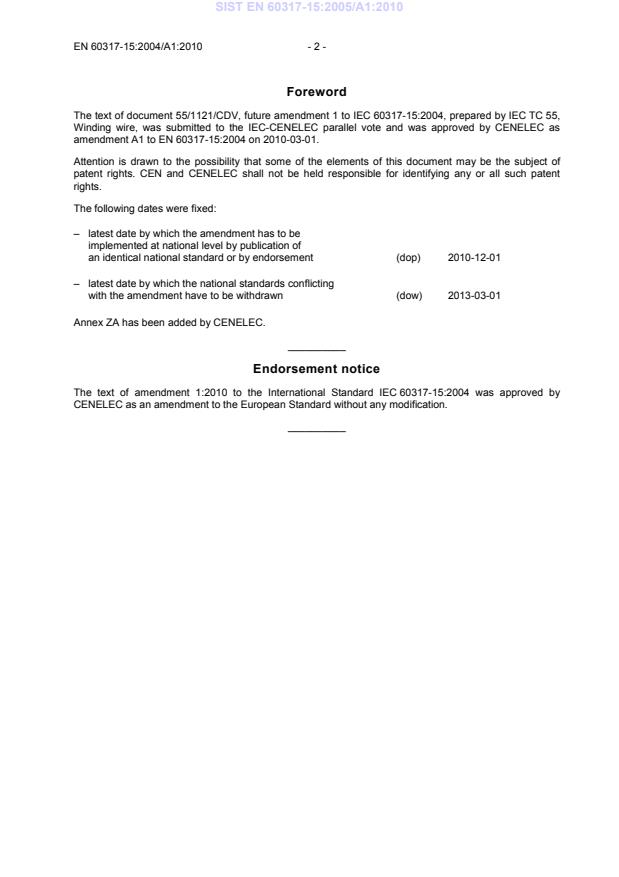 Ta slovenski standard je istoveten z: EN 60317-15:2004/A1:2010