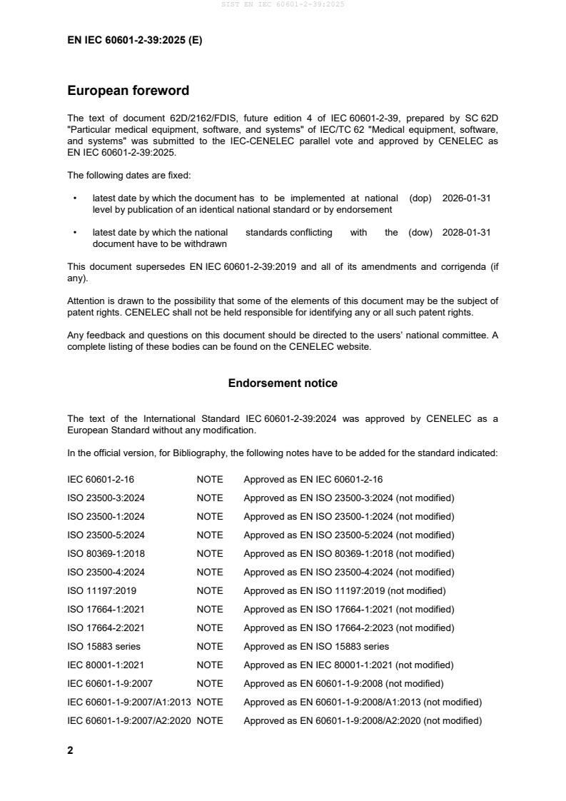 IEC 60601-2-39:2024 cancels and replaces the third edition published in 2018. This edition constitutes a technical revision.