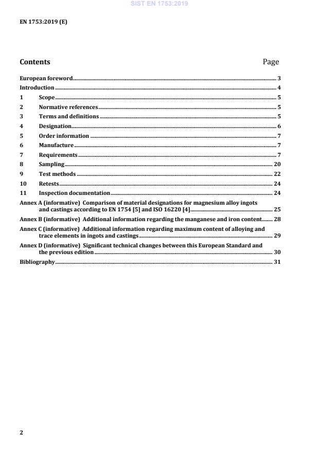 - Composition limits for alloying and trace elements are given per grade; Annex B and C provide additional guidance on Mn/Fe and maximum trace contents.