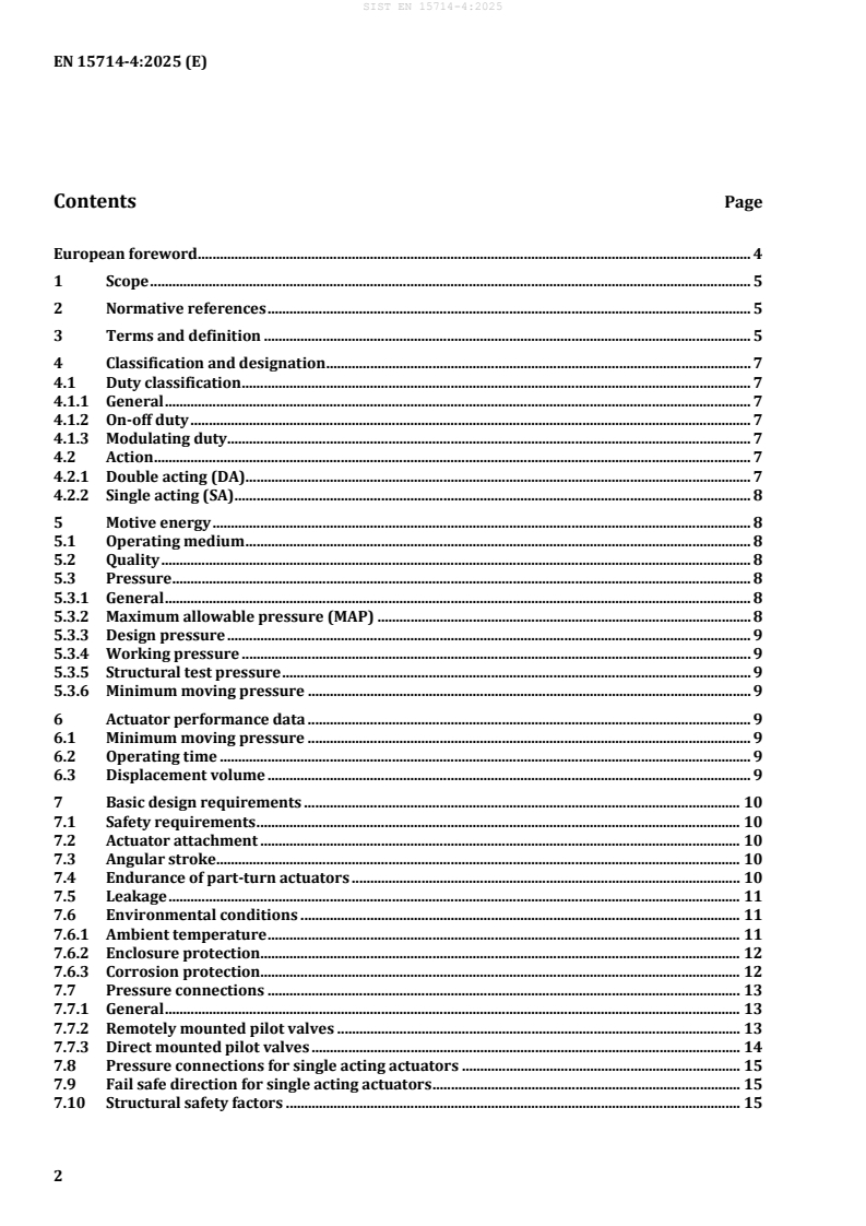 EN 15714-4:2025 - published by CEN in May 2025 - defines the basic requirements for hydraulic part-turn actuators for industrial valves. It covers both double acting (DA) and single acting (SA) hydraulic part‑turn actuators used for on‑off and modulating control duties, and provides guidance on enclosure and corrosion protection, control interfaces and testing. The standard supersedes the previous edition and updates endurance values and testing/marking structure.