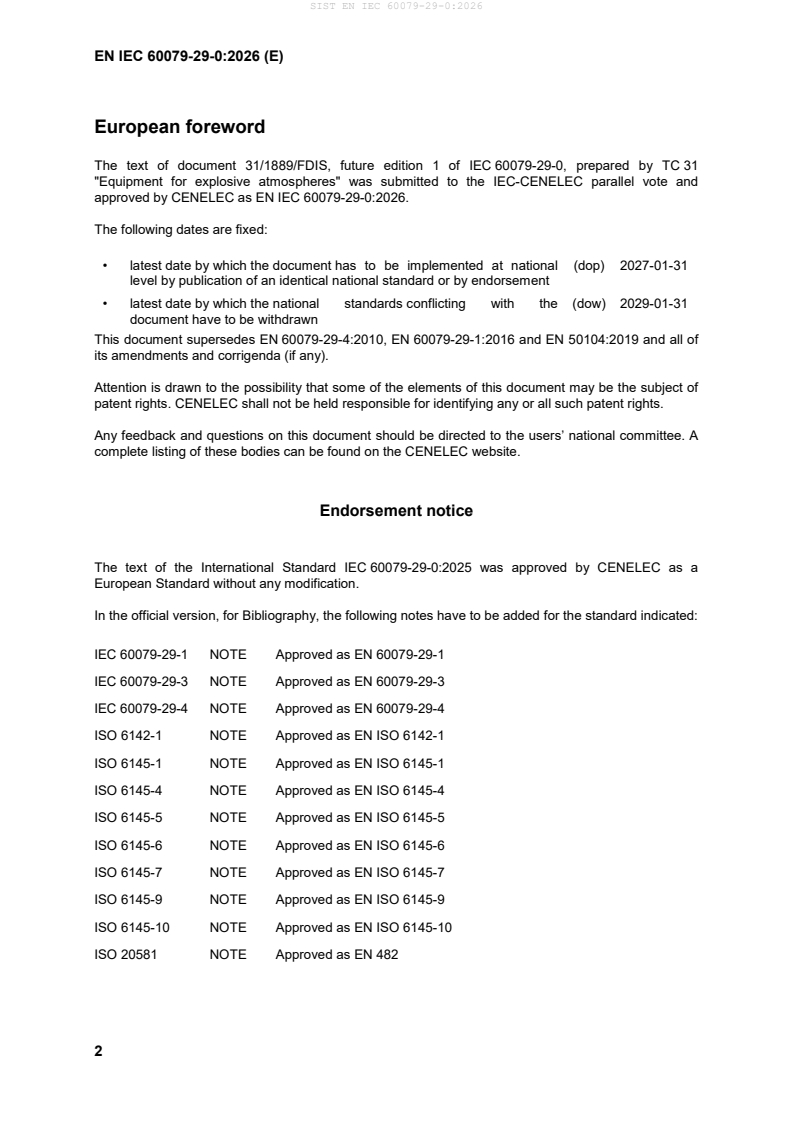 Ta prva izdaja IEC 60079-29-0 razveljavlja in nadomešča drugo izdajo 60079-29-1, objavljeno leta 2016, in njen Dodatek 1:2020 ter prvo izdajo IEC 60079-29-4, objavljeno leta 2009. Poleg tega IEC 60079-29-0 Tip TX-SM razveljavlja in nadomešča Tip SM prve izdaje IEC 62990-1.