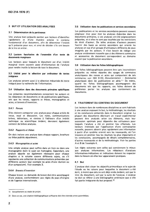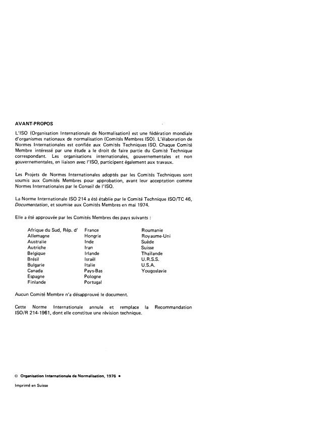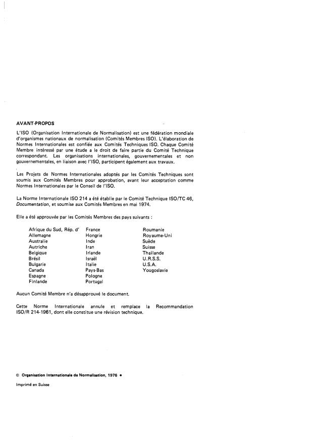 ISO 214:1976 - Documentation -- Analyse pour les publications et la documentation