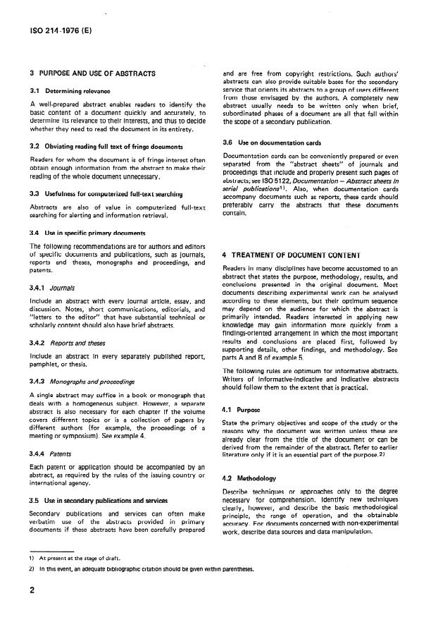 Keywords: ISO 214:1976, abstracts for publications, documentation abstracts, abstract guidelines, abstract preparation, scientific abstracts, technical abstracts, bibliographic abstracts.