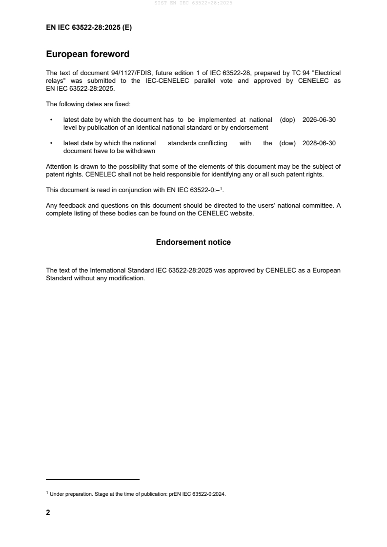 relays" was submitted to the IEC-CENELEC parallel vote and approved by CENELEC as