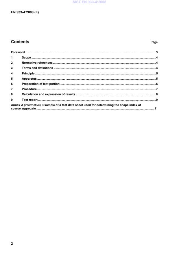 - Reporting: The test report must reference EN 933-4:2008, identify the laboratory and sample, list particle size fractions tested, and give the shape index (SI) rounded to the nearest whole number.
