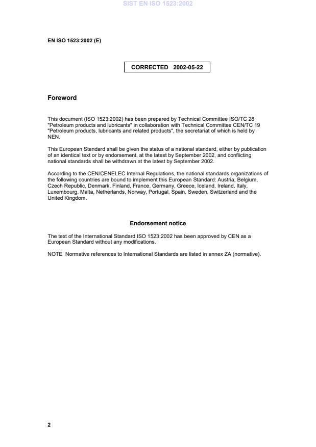 ISO 1523 was prepared jointly by Technical Committees ISO/TC 28, Petroleum products and lubricants and