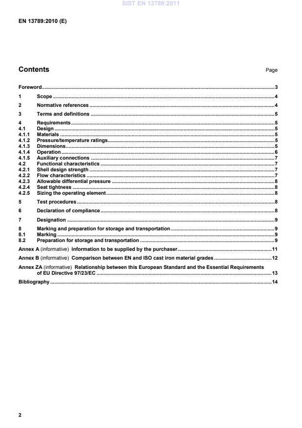 Relationship between this European Standard and the Essential Requirements of EU Directive 97/23/EC . 13Bibliography . 14 SIST EN 13789:2011