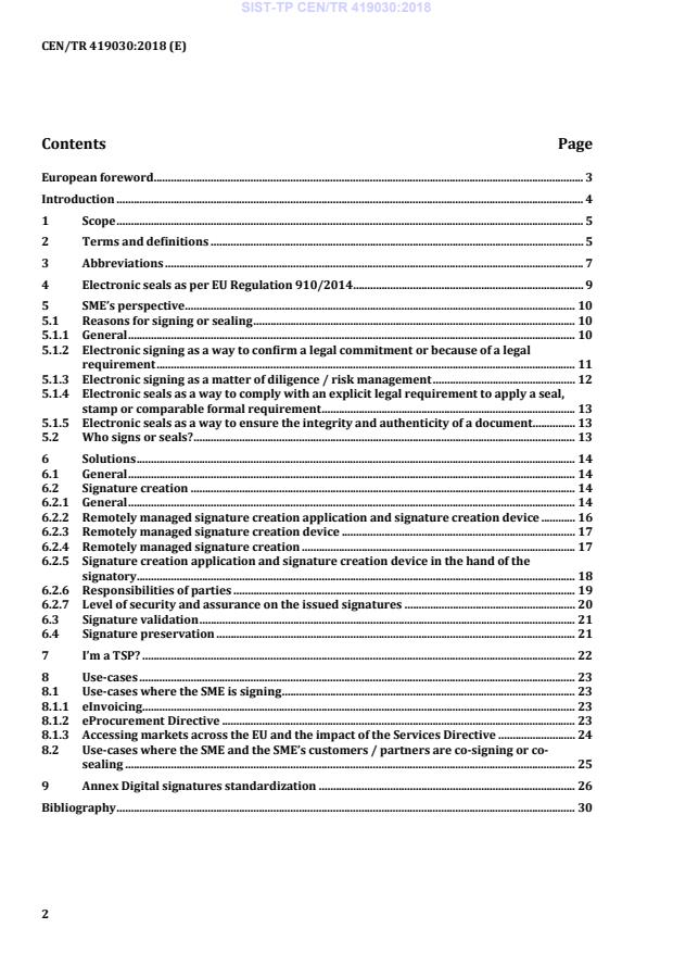 Ta dokument nadgrajuje FprCEN/TR 419040, »Smernice za državljane«, z razlago koncepta in uporabe elektronskih podpisov, da bi dodatno pomagal malim in srednje velikim podjetjem razumeti pomembnost uporabe elektronskih podpisov v njihovih poslovnih postopkih. Mala in srednje velika podjetja usmerja v odkrivanje ravni elektronskih podpisov, ki je primerna za njihove potrebe, razširja delo na posebne scenarije primerov uporabe, pri čemer se zlasti posveča tehnologijam in rešitvam, ter obravnava druga tipična konkretna vprašanja, na katera morajo mala in srednje velika podjetja odgovoriti pred kakršnim koli odločanjem (kot je vprašanje priznavanja njihovega elektronskega podpisa s strani tretjih oseb, znotraj njihovega sektorja, države ali celo mednarodno).