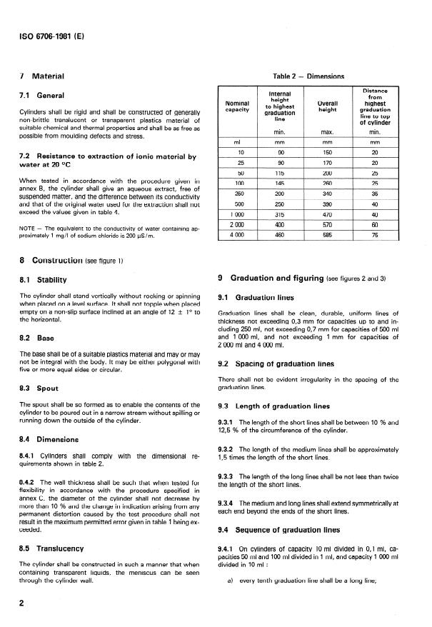 ISO 6706:1981 - Plastics laboratory ware -- Graduated measuring cylinders