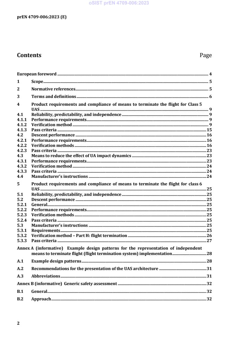 The oSIST prEN 4709-006:2023 is a technical standard developed by CEN (European Committee for Standardization) under the Aerospace series for Unmanned Aircraft Systems (UAS). Titled "Means to terminate flight, requirements, and verification," this standard addresses critical safety protocols to support compliance with the Commission Delegated Regulation (EU) 2019/945. Specifically, it governs the technical specifications, test methods, and pass criteria for implementing reliable flight termination systems in UAS.