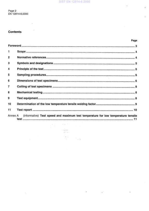 2003-01.Slovenski inštitut za standardizacijo. Razmnoževanje celote ali delov tega standarda ni dovoljeno.Preskus zvarjenih spojev plastomernih polizdelkov - 3. del: Trgalni preskus pri nizki temperaturiPrüfen von Schweißverbindungen aus thermoplastischen Kunststoffen - Teil 6: Zugversuch bei tiefen TemperaturenEssais des assemblages soudés sur produits semi-finis en thermoplastiques - Partie 6: Essai de traction a basse températureTesting of welded joints of thermoplastics semi-finished product