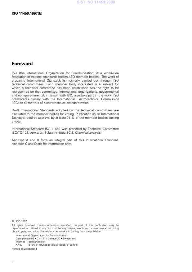Overview - ISO 11459:1997 (Iron ores, Certified reference materials)