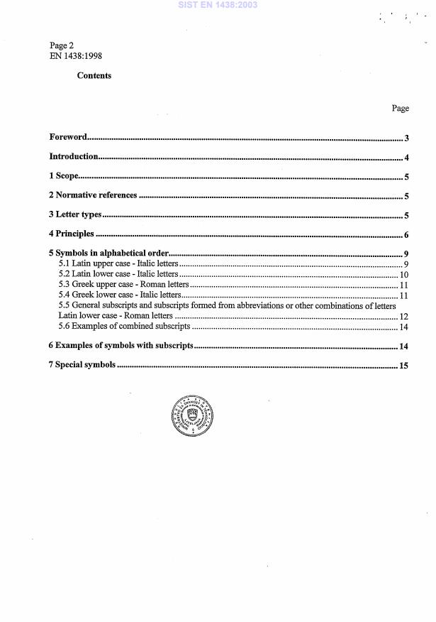 SIST EN 1438:2003 is a standard published by the Slovenian Institute for Standardization (SIST). Its full title is "Symbols for timber and wood-based products". This standard covers: This standard defines a wide range of symbols for use in documents covering solid timber and all wood-based materials. Clause 5 follows the layout of ISO 3898. All the symbols are presented as letter types in alphabetical order.