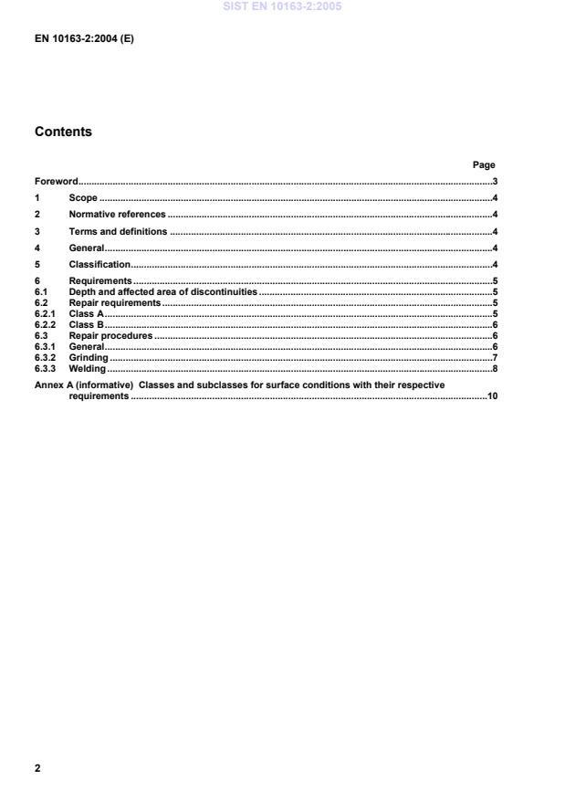Classes and subclasses for surface conditions with their respective requirements.10 SIST EN 10163-2:2005