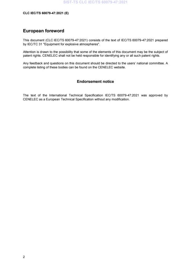 This document (CLC IEC/TS 60079-47:2021) consists of the text of IEC/TS 60079-47:2021 prepared