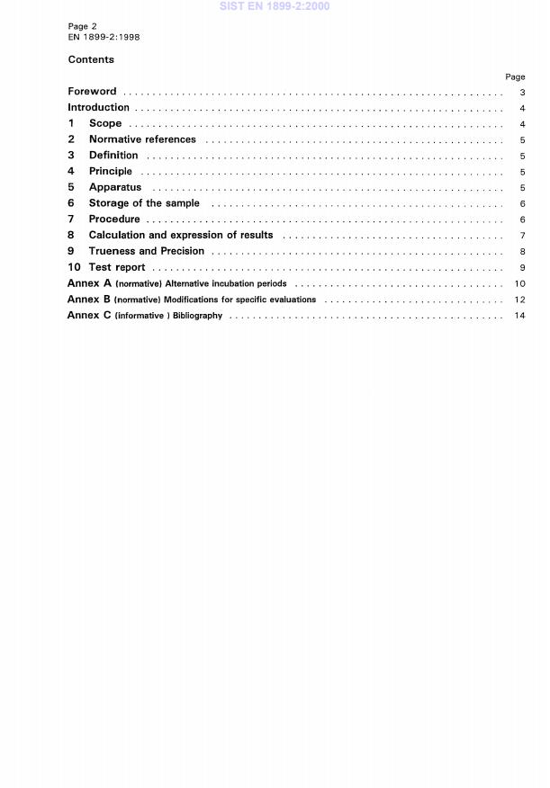 Is0 5815 : 1989 (El Foreword IS0 (the International Organization for Standardization) is a worldwide federation of national standards bodies (IS0 member bodies). The work of preparing International Standards is normally carried out through IS0 technical committees. Each member body interested in a subject for which a technical committee has been established has the right to be represented on that committee. International organizations, govern- mental and non-governmental, in liaison with ISO, also take part in the work. IS0 collaborates closely with the International Electrotechnical Commission (IEC) on all matters of electrotechnical standardization. Draft International Standards adopted by the technical committees are circulated to the member bodies for approval before their acceptance as International Standards by the IS0 Council. They are approved in accordance with IS0 procedures requiring at least 75 % approval by the member bodies voting. International Standard IS0 5815 was prepared by Technical Committee ISO/TC 147, Water quality. This second edition constitutes a minor replaces cancels and revision. the first edition (IS0 5815 : 19831, of which it Annex A of this International Standard is for information only. 0 IS0 1989 All rights reserved. No part of this publication may be reproduced or utilized in any form or by any means, electronic or mechanical, including photocopying and microfilm, without permission in writing from the publisher. International Organization for Standardization Case postale 56 l CH-121 1 Genkve 20 l Switzerland Printed in Switzerland SIST EN 1899-2:2000