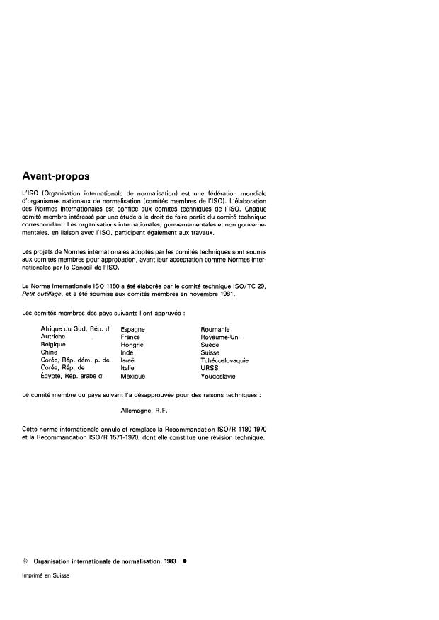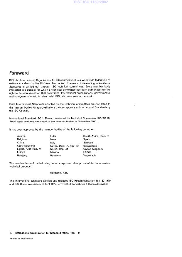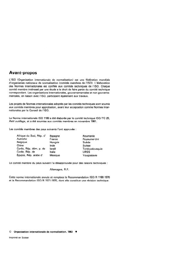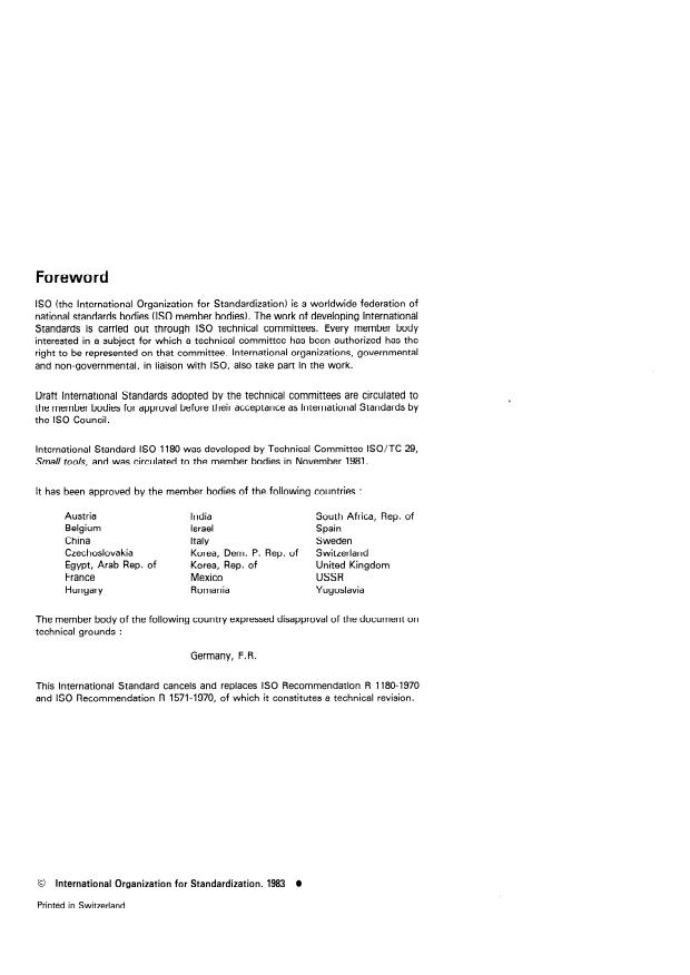 - ISO 1180 replaces earlier recommendations (R 1180-1970 and R 1571-1970) and was developed by ISO/TC 29 (Small tools).