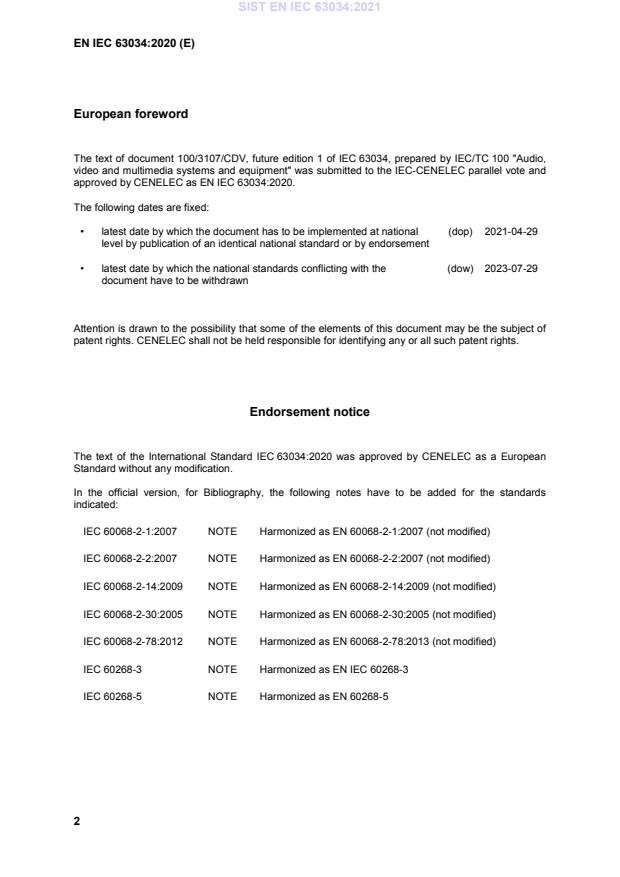 Ta slovenski standard je istoveten z: EN IEC 63034:2020