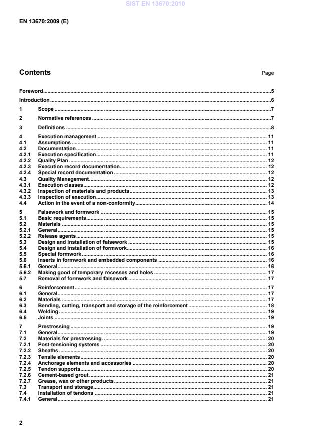 SIST EN 13670:2010 organizes execution requirements and guidance across practical technical areas, including: