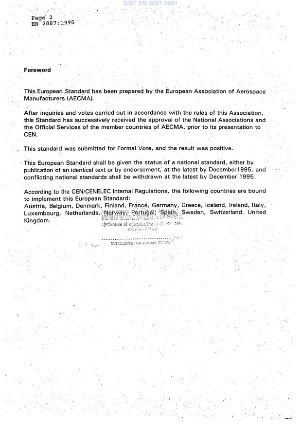 Ta slovenski standard je istoveten z: EN 2887:1995