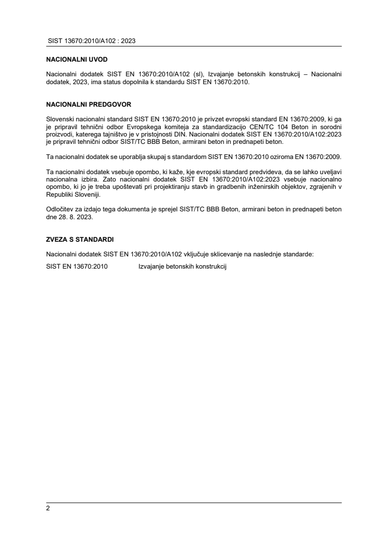 dodatek, 2023, ima status dopolnila k standardu SIST EN 13670:2010.