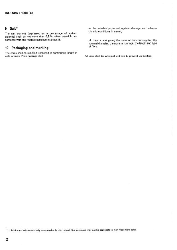 The acidity (water-soluble acids) and salt (sodium chloride content) levels in fibre cores must not exceed specified limits to prevent corrosion or fibre degradation.Packaging and Marking