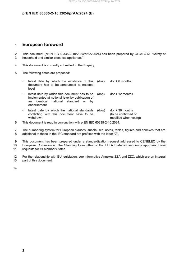 2 This document (prEN IEC 60335-2-10:2024/prAA:2024) has been prepared by CLC/TC 61 "Safety of