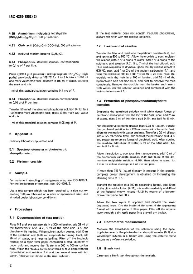 Keywords: ISO 4293, manganese ores, phosphorus determination, molybdovanadate photometric method, manganese concentrates analysis, phosphorus content testing, photometric analysis, mineral sampling standards, chemical assay manganese, phosphorus impurities measurement.