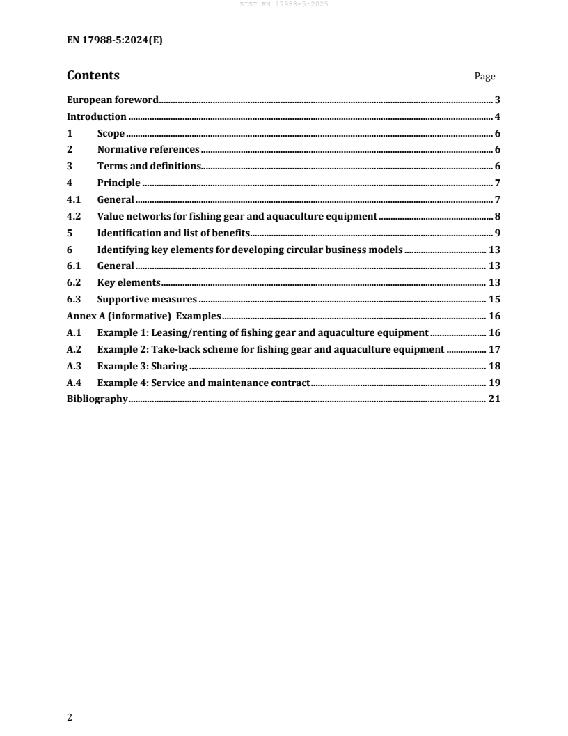 EN 17988-5:2024 - Circular design of fishing gear and aquaculture equipment: Part 5 - Circular business models (CEN) provides guidelines and fundamental principles to design and implement circular business models for fishing gear and aquaculture equipment that contain plastics. The standard focuses on opportunities for value retention, product life extension, and recycling, helping stakeholders transition from linear value chains to circular value networks. It is part of the EN 17988 series on circular design and supports EU policies such as the Port Reception Facilities and Single Use Plastics directives and Extended Producer Responsibility (EPR) schemes.