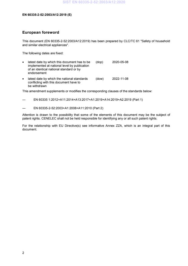 This amendment A12 modifies the European Standard EN 60335-2-52:2003; it was approved by CENELEC on 2016-04-18. CENELEC
