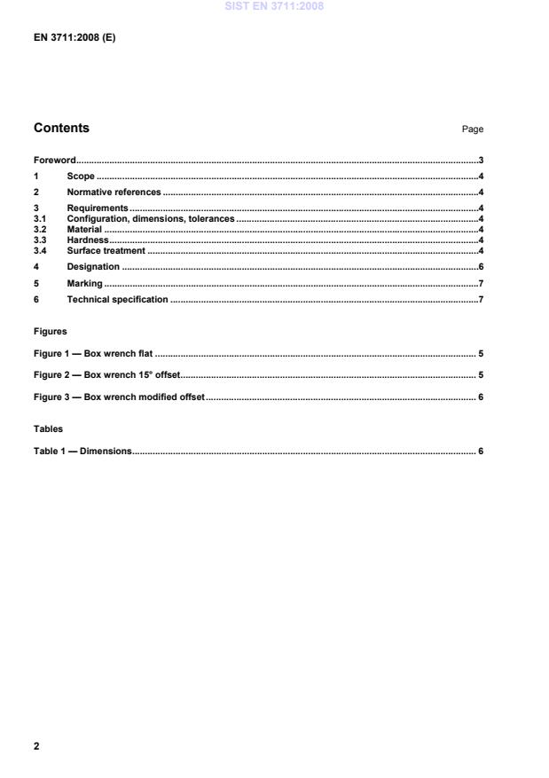 SIST EN 3711:2008 is a standard published by the Slovenian Institute for Standardization (SIST). Its full title is "Aerospace series - Wrench-double ended, bi-hexagonal - Straight, cranked, offset". This standard covers: This standard specifies the properties of the following types of double end box wrenches: double head flat, double head offset and double end modified offset.