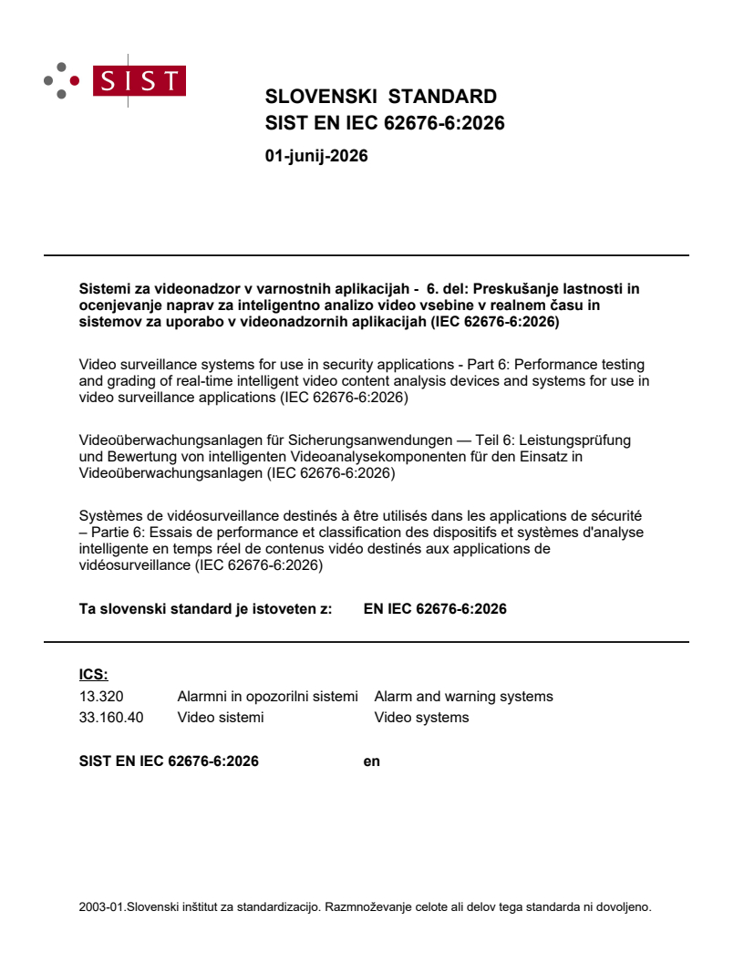 Ta slovenski standard je istoveten z: EN IEC 62676-6:2026