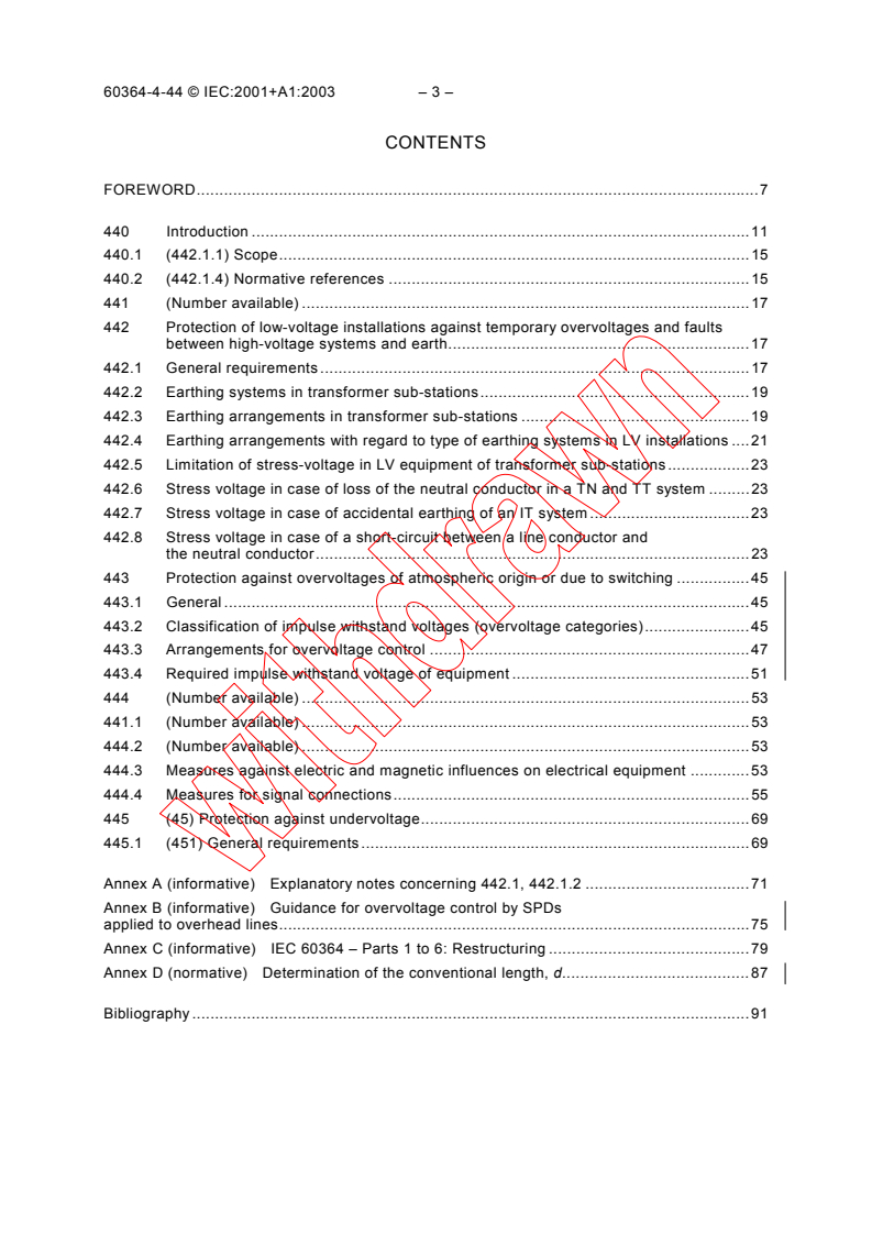 IEC 60364-4-44:2001+AMD1:2003 CSV - Electrical installations of buildings - Part 4-44: Protection for safety - Protection against voltage disturbances and electromagnetic disturbances Released:12/10/2003 Isbn:2831872871