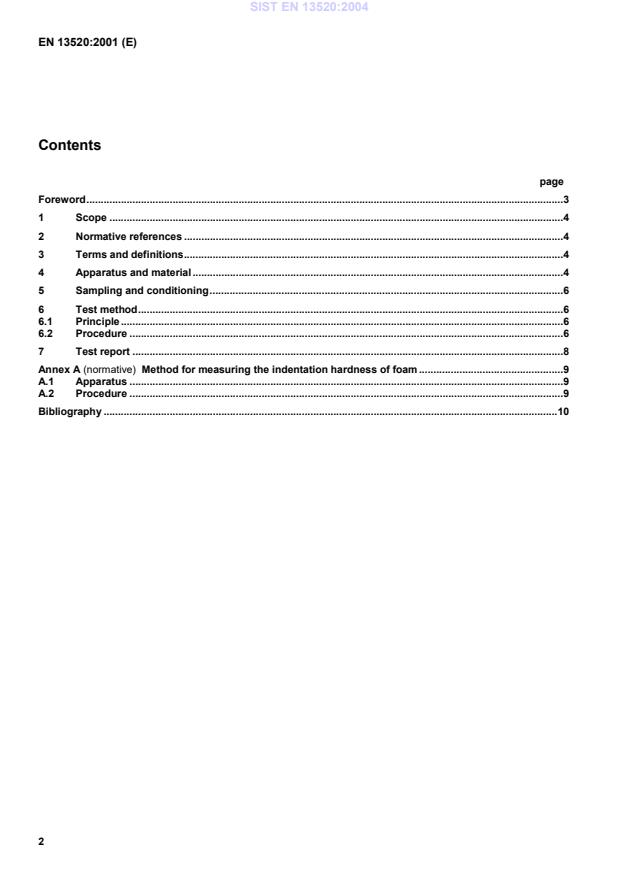 Method for measuring the indentation hardness of foam.9A.1Apparatus.9A.2Procedure.9Bibliography.10SIST EN 13520:2004