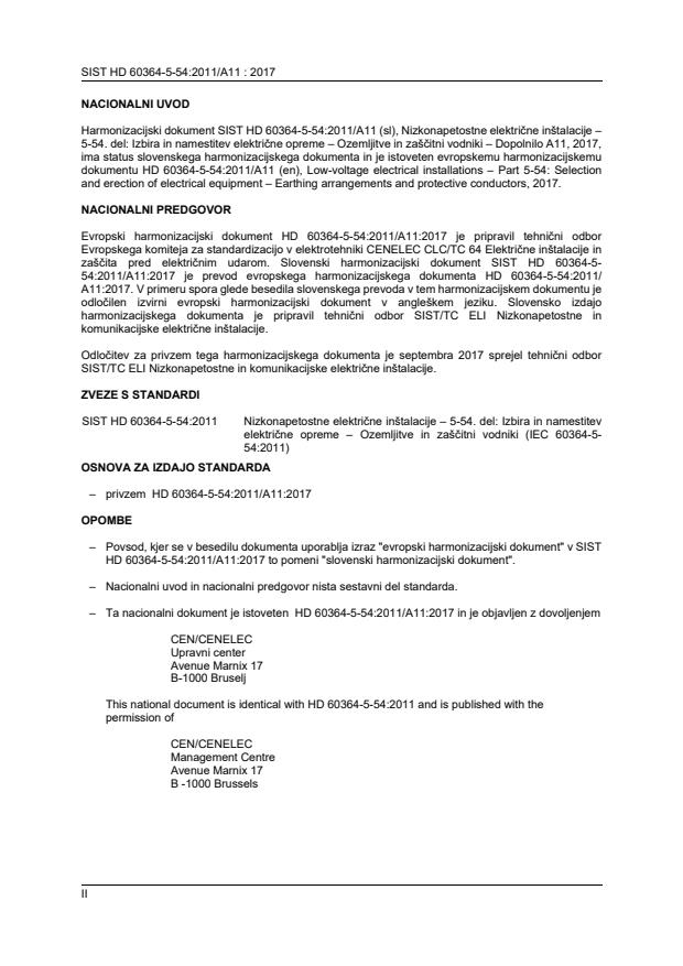 – Ta nacionalni dokument je istoveten HD 60364-5-54:2011/A11:2017 in je objavljen z dovoljenjem