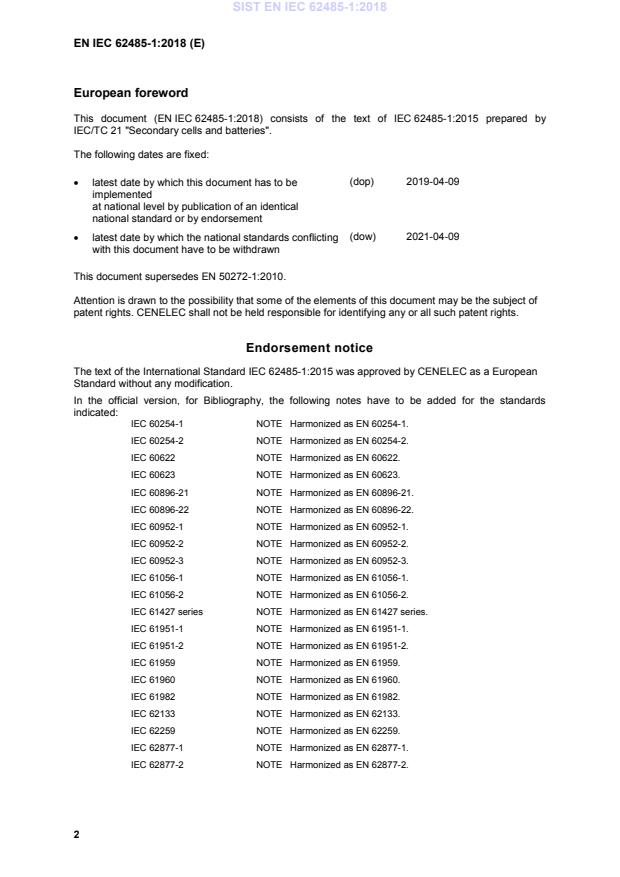 SIST EN IEC 62485-1:2018 has the following relationships with other standards: It is inter standard links to SIST EN 50272-1:2010, SIST EN 50272-1:2010. Understanding these relationships helps ensure you are using the most current and applicable version of the standard.