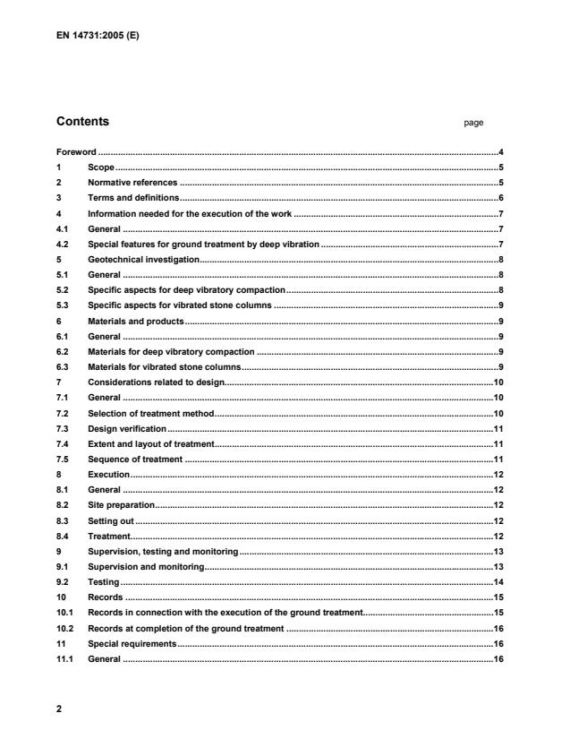 EN 14731:2005 (CEN) specifies requirements for the planning, execution, testing and monitoring of ground treatment by deep vibration. It covers two principal treatment types: