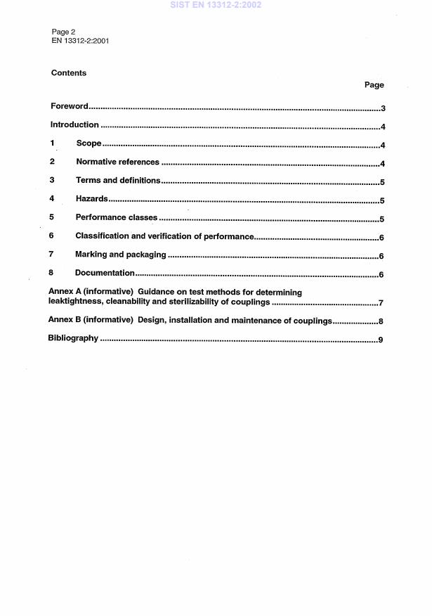 Keywords: EN 13312-2:2001, biotechnology couplings, performance criteria, bioprocess piping, containment, sterility, worker safety, environmental protection.