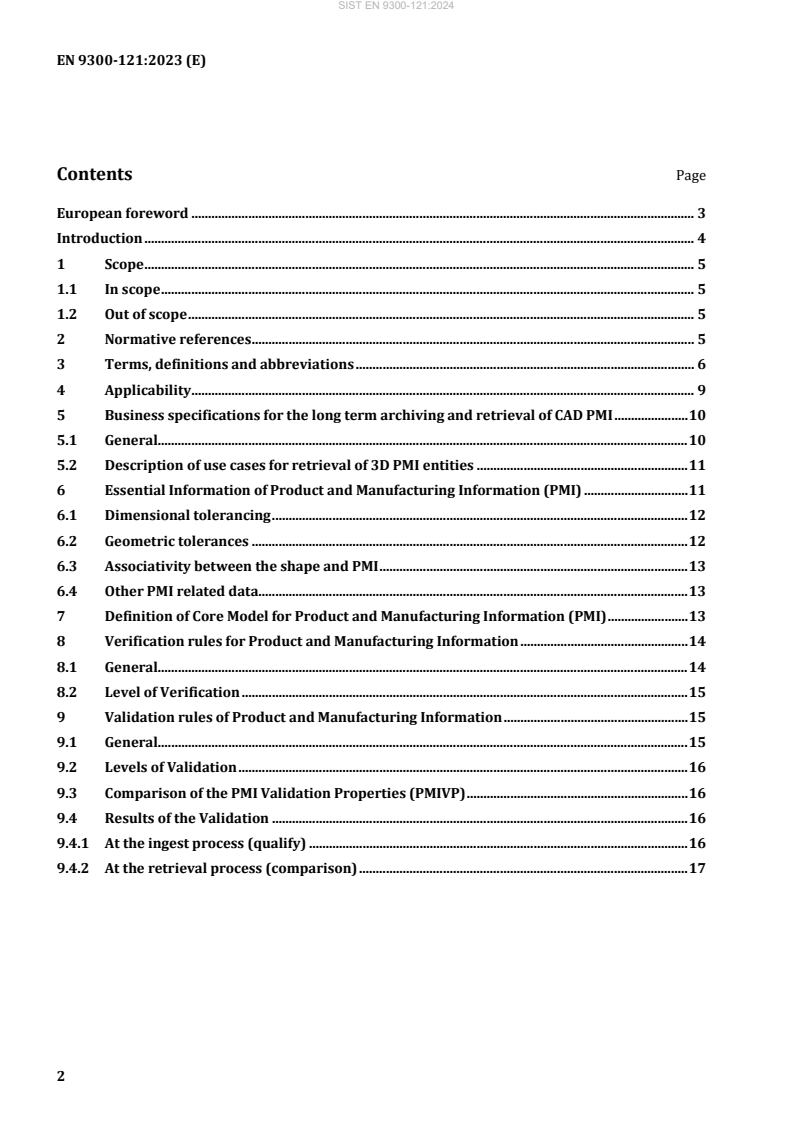 Ta dokument določa zahteve za dolgoročno digitalno shranjevanje semantične predstavitve informacij o grafičnem izdelku in proizvodnji (PMI) z morebitnimi povezavami do 3D eksplicitne oblike in geometrije posameznih delov CAD. Cilj je ohraniti te 3D informacije brez izgub podatkov glede na geometrijo, ki jo proizvede prvotni sistem CAD, v skladu z načeli, določenimi v standardu EN 9300-003 »Osnove in pojmi«.