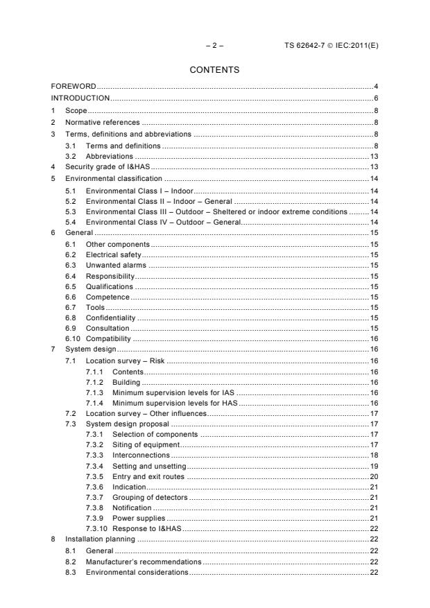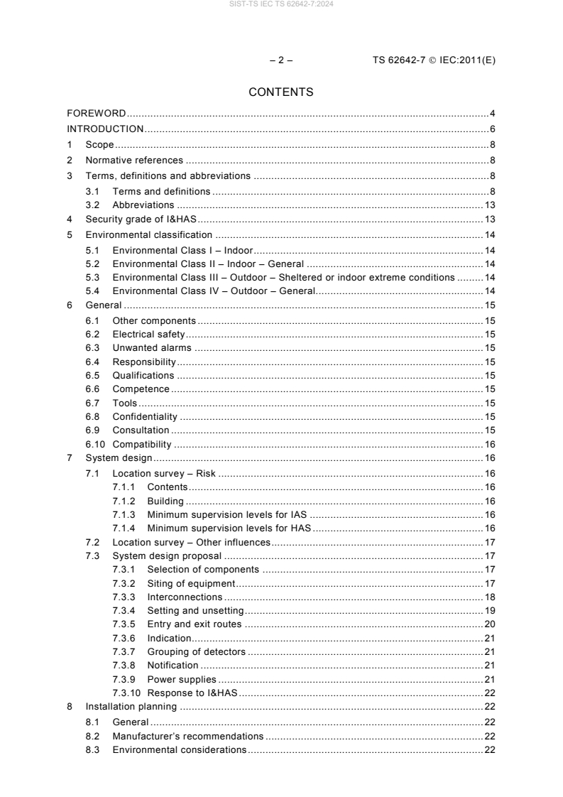Keywords: alarm systems, intrusion and hold-up systems, I&HAS, IEC TS 62642-7:2011, application guidelines, system design, installation, commissioning, maintenance, security grade, environmental classification.