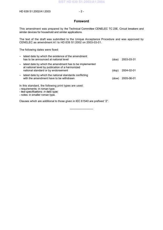 SIST HD 639 S1:2003/A1:2004 has the following relationships with other standards: It is inter standard links to SIST HD 639 S1:2003, SIST EN IEC 61540:2026. Understanding these relationships helps ensure you are using the most current and applicable version of the standard.