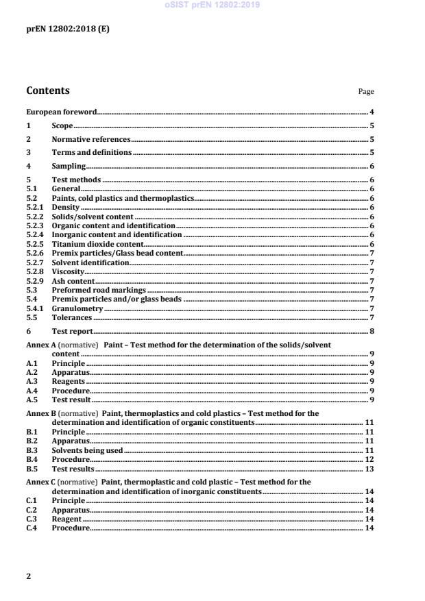 FprEN 12802 - "Road marking materials - Laboratory methods for identification" (CEN draft) specifies laboratory procedures to identify the composition and key constituents of road marking materials used in horizontal signalization. The document provides a suite of test methods for paints, cold plastics, thermoplastics, preformed markings and drop-on materials. Tests are modular: not all methods need be applied unless required by the user, contract or regulation.