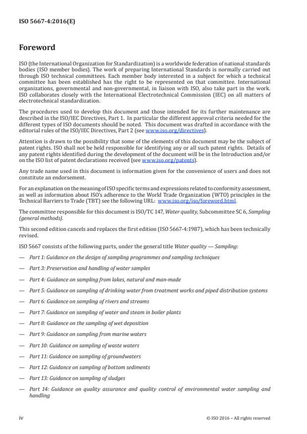 Ta del standarda ISO 5667 podaja smernice za načrtovanje programov in tehnik vzorčenj ter za konzerviranje in ravnanje z vzorci vode, pridobljenimi iz naravnih in umetnih jezer v pogojih, ko je jezero poledenelo in ko ni. Ta del standarda ISO 5667 se uporablja za jezera z vodnimi rastlinami in brez njih.