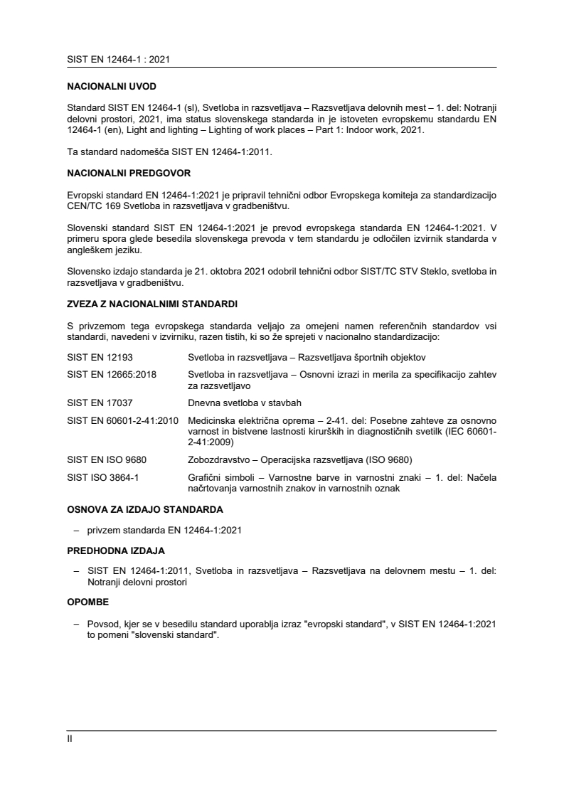 - Published as EN 12464-1:2021 and adopted by SIST.