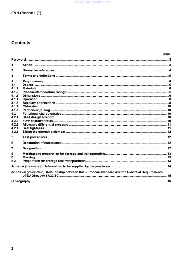 Relationship between this European Standard and the Essential Requirements of EU Directive 97/23/EC . 15Bibliography . 16 SIST EN 13709:2011