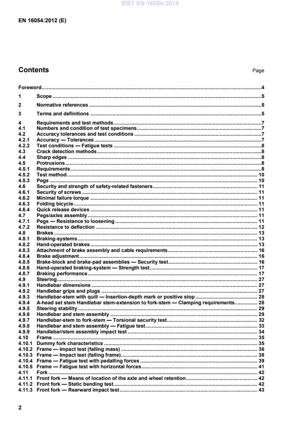 SIST EN 16054:2014 specifies a comprehensive set of safety checks and test methods covering the full bicycle and its components. Major technical topics include: