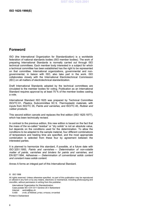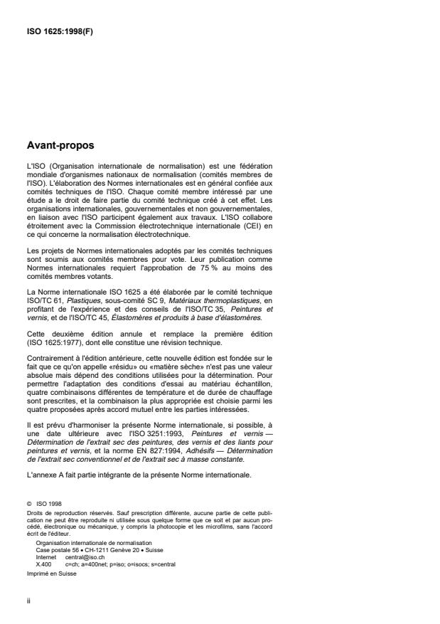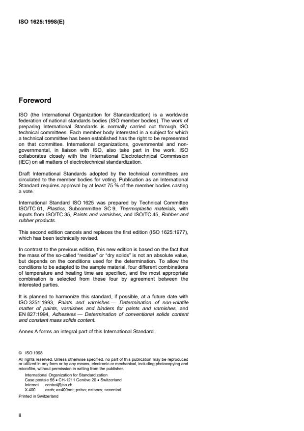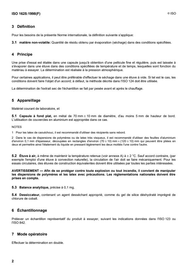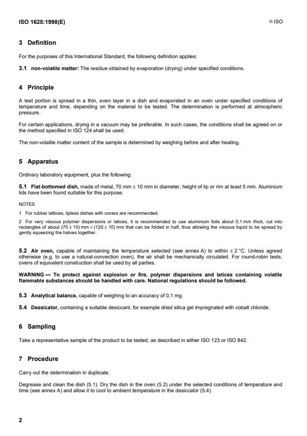 ISO 1625:1998 - Plastics -- Polymer dispersions -- Determination of non-volatile matter (residue) at specified temperatures
