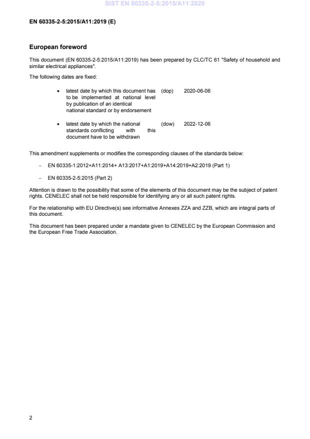 This amendment A11 modifies the European Standard EN 60335-2-5:2015; it was approved by CENELEC on 2019-07-23. CENELEC