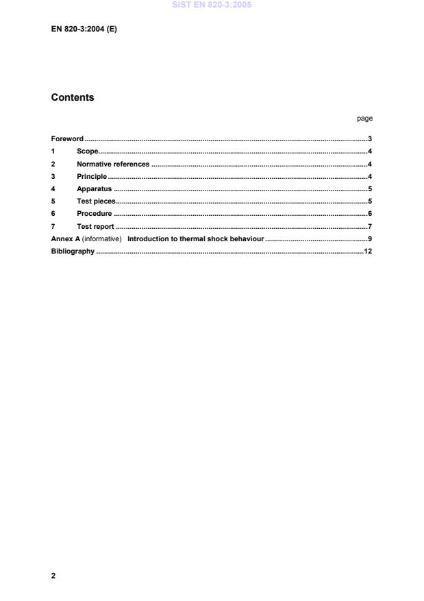 This Part of EN 820 specifies the principles of thermal shock testing, and provides a general method for conducting thermal shock tests by quenching into water for both test pieces and components by quenching into water.